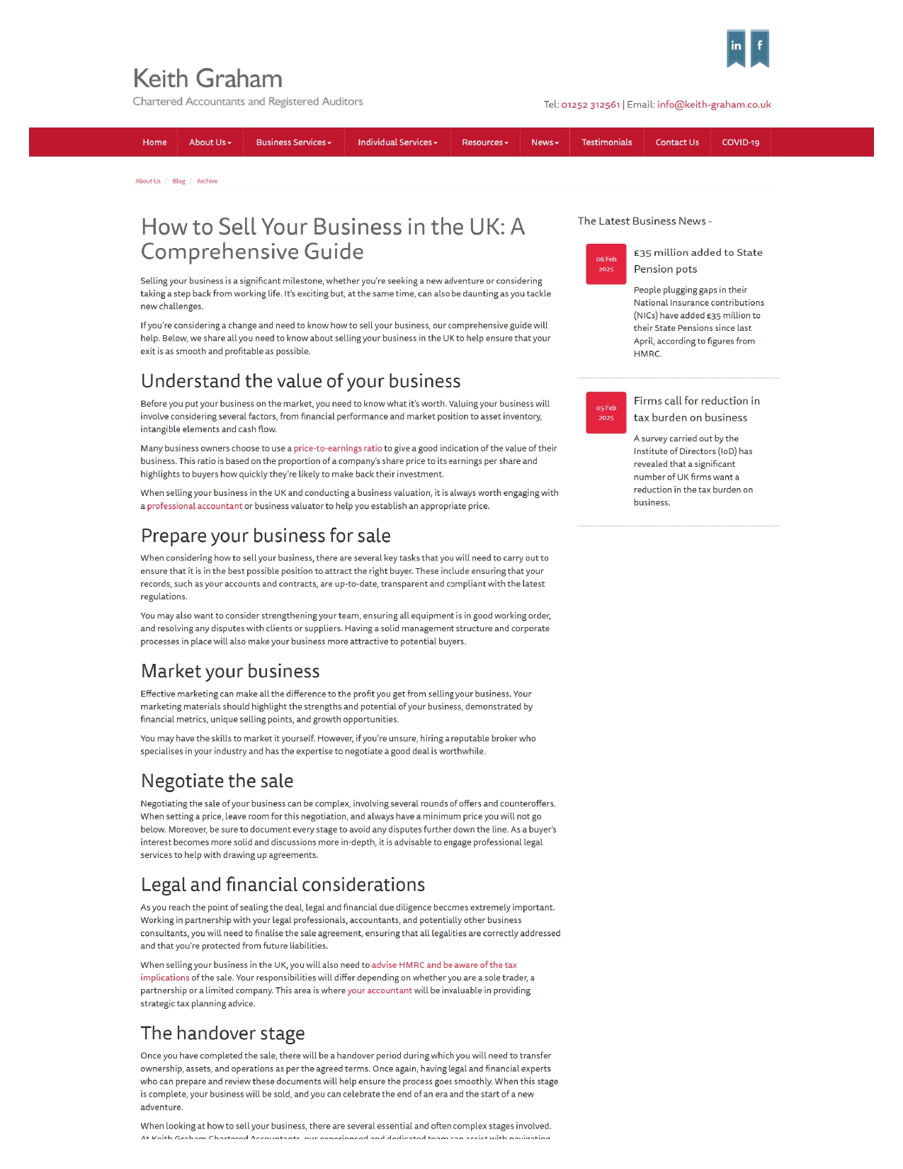 I created this blog article for Keith Graham Chartered Accountants to guide small business owners through the full process of preparing, marketing and completing a business sale, using clear, step-by-step advice.