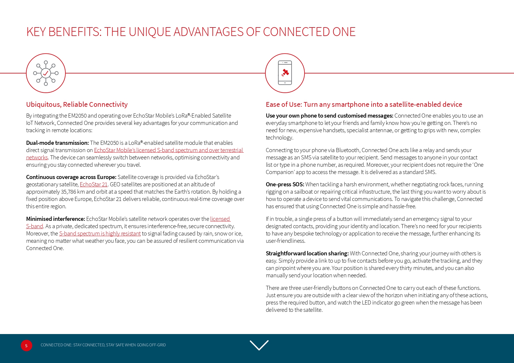 I produced this technical use case for EchoStar Mobile, showcasing how the Connected One device uses satellite IoT connectivity to provide reliable messaging, tracking and SOS capability in remote locations.