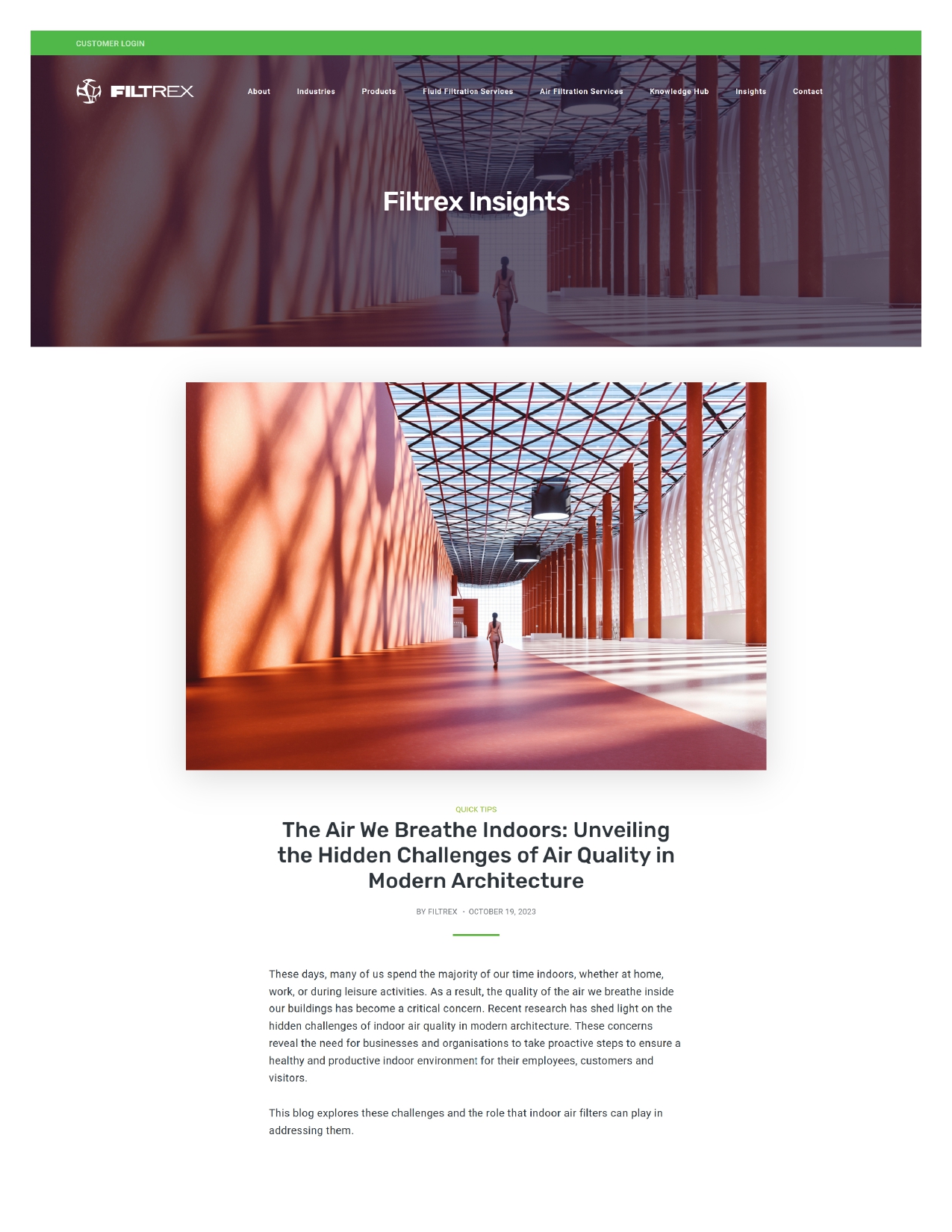 In this insight article written for Filtrex, I explain the hidden challenges of indoor air quality in modern architecture and explore how effective filtration can support healthier, more efficient buildings.